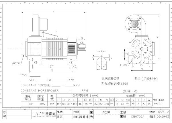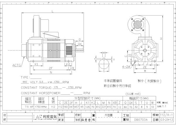 112/2-1(3HP, 190V, 1750rpm)、112/4-1(7.5HP, 440V, 1750rpm)