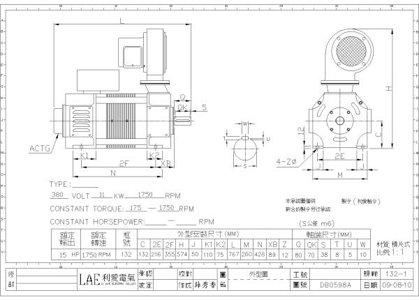 132-1(15HP, 440V, 1750rpm)