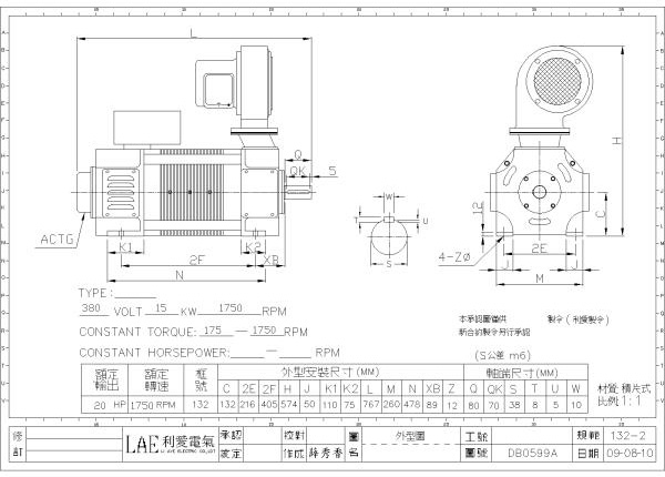 132-2(20HP, 440V, 1750rpm)