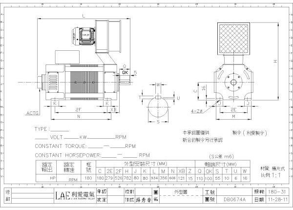 180-41(30HP, 440V, 600/1800rpm)、180-41(50HP, 440V, 850/1800rpm)