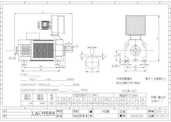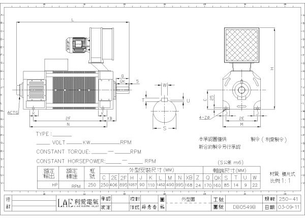 250-41(100HP, 440V, 550/1150rpm)、250-41(100HP, 440V, 600/2000rpm)