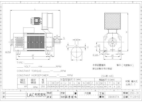 250-31(60HP, 440V, 500/1500rpm)、250-31(125HP, 420V, 850/1750rpm)