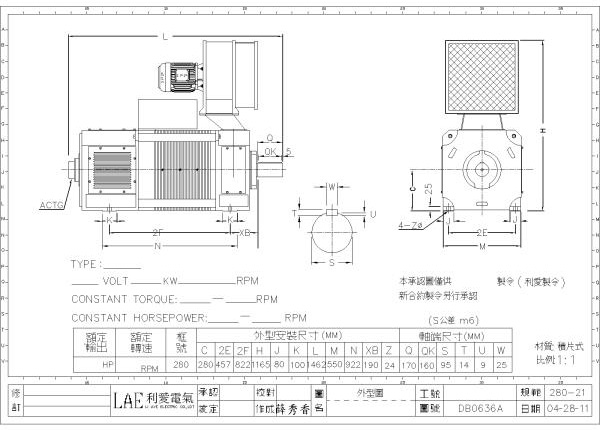 280-21(150HP, 440V, 600/1800rpm)、280-21(200HP, 440V, 850/1800rpm)