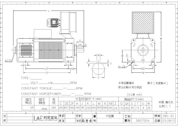 280-32(200HP, 440V, 850rpm)、280-32(400HP, 440V, 1500rpm)