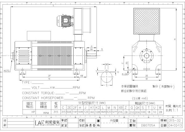 315-32(250HP, 440V, 600/1800rpm)